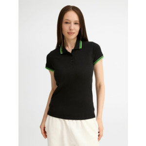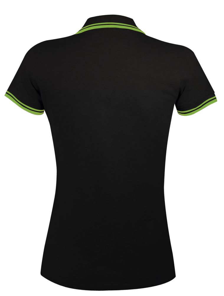 Рубашка поло женская Pasadena Women 200 с контрастной отделкой, черная с зеленым