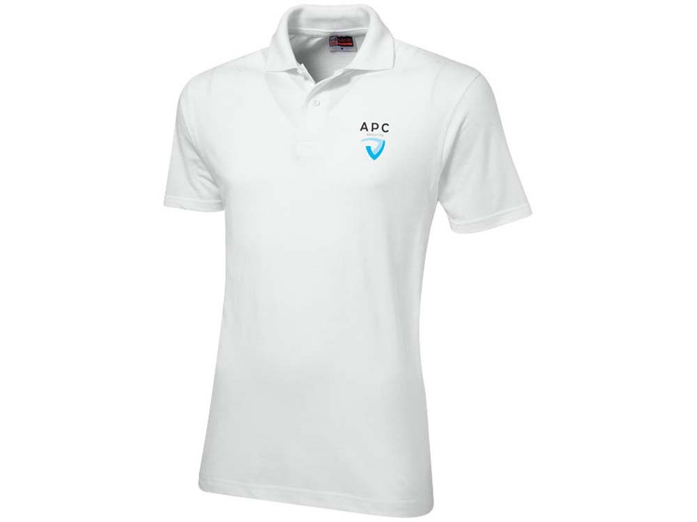 Рубашка-поло First. Воротник 1х1. Обшивка внутри воротника. Мужская и детская модели с 2 пуговицами, женская - с 4 пуговицами. Пуговицы с гравировкой в тон. Пике, 100% хлопок. 160 г/м2.
