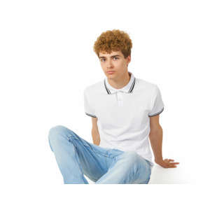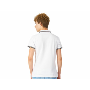 Рубашка-поло Erie с окантовкой. Воротник и манжеты резинка 1х1. Мужская модель с двумя пуговицами, женская - 4 пуговицы в тон изделия. Обшивка внутри воротника. Женская модель с разрезами по бокам. Женская модель приталена. Пике, 100% чесаный хлопок. Плотность 180 г/м2.