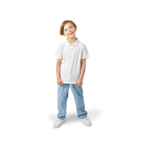 Детская рубашка поло First. Воротник 1х1. Обшивка внутри воротника. Мужская и детская модели с 2 пуговицами, женская - с 4 пуговицами. Пуговицы с гравировкой в тон. Пике, 100% хлопок. 160 г/м².