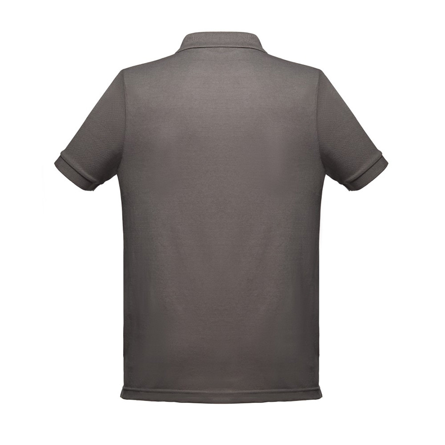 Мужская рубашка-поло из смесовой ткани-пике. Полотно футболки упругое и гладкое благодаря обработке ферментами "enzyme wash" и сохраняет форму при стирке. Модель полуприлегающего силуэта. Благодаря манжете из риба 1х1 рукав смотрится очень аккуратно. Воротник также выполнен из риба 1х1, внутри ворота - укрепляющая тесьма по горловине. Планка с 3 пуговицами в тон изделия. запасная пуговица на ярлыке во внутреннем боковом шве. Цвет. близкий к Pantone Cool Grey 10