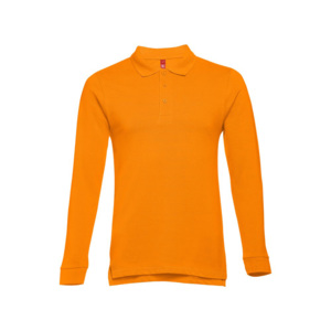 Мужская рубашка-поло с длинным рукавом из хлопковой ткани-пике. Полотно футболки упругое и гладкое благодаря обработке ферментами "enzyme wash" и сохраняет форму при стирке. Модель полуприлегающего силуэта. Благодаря манжете из риба 1х1 рукав смотрится очень аккуратно. Воротник также выполнен из риба 1х1, внутри ворота - укрепляющая тесьма по горловине. Планка с 3 пуговицами в цвет основной ткани изделия. Запасная пуговица на ярлыке во внутреннем боковом шве.