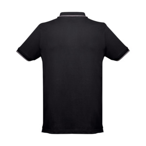 Мужская рубашка-поло из хлопковой ткани-пике. Полотно футболки упругое и гладкое благодаря обработке ферментами "enzyme wash" и сохраняет форму при стирке. Модель полуприлегающего силуэта. Благодаря манжете из риба 1х1 рукав смотрится очень аккуратно. Воротник также выполнен из риба 1х1, внутри ворота - укрепляющая тесьма по горловине. Манжета на рукавах и край воротника выполнены контрастным цветом. Планка с 3 контрастными пуговицами. Запасная пуговица на ярлыке во внутреннем боковом шве.