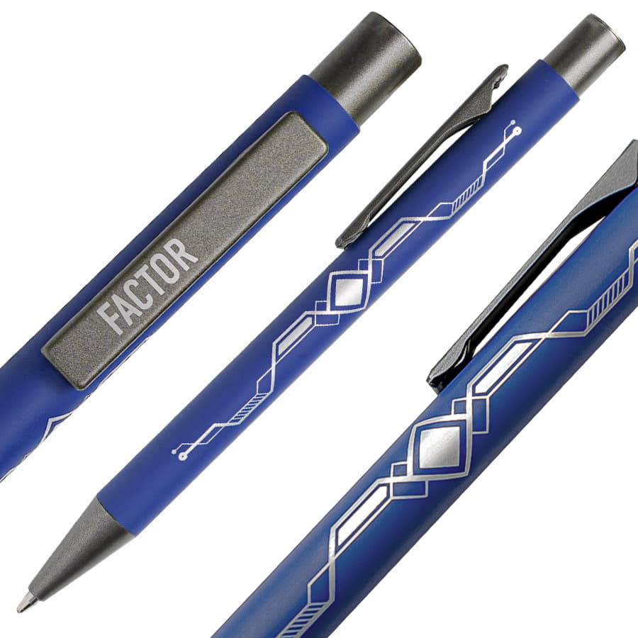 Модель ручки FACTOR – это оптимальный выбор для тех, кто предпочитает добротное качество, надежность и изящную простоту. Этой ручкой писать легко и удобно, она буквально скользит по бумаге благодаря качественным чернилам и надежному пишущему узлу. Все эти качества позволят ручке служить вам верой и правдой долгое время. А клип и корпус данной модели отлично подойдут для нанесения вашего логотипа. • Pantone, близкий к 3584 С• Размер 140*10 мм• Корпус из алюминия с покрытием soft touch• Металлический клип-прищепка серого цвета • Пластиковые носик и кнопка в цвет клипа• Нажимной механизм подачи стержня• Пулевидный пишущий узел 1.0 мм• Длина линии письма 1000 м • Чернила Dokumental. Цвет чернил синий• Сменный стержень Parker type• При гравировке вскрывается натуральный цвет алюминия, который может быть либо более белый, либо более серого оттенка.