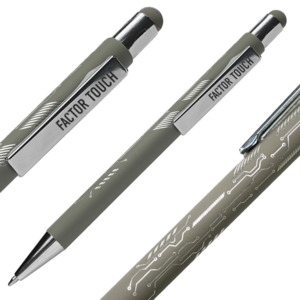 Ручка шариковая FACTOR TOUCH со стилусом, серый/серебро, металл, пластик, софт-покрытие