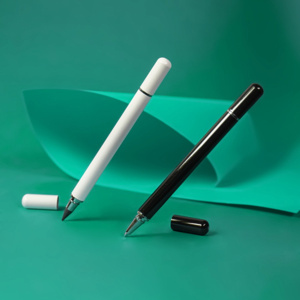 Функциональная модель 2 в 1. С одной стороны - это ручка, а с другой - вечный карандаш. Идеальный выбор рациональных людей, как для промо мероприятия, так и в качестве бизнес подарка. Так как гораздо выгоднее приобрести один пишущий инструмент, в котором будет и ручка, и вечный карандаш, нежели покупать их по отдельности.