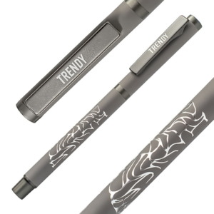 Название данной ручки даже не нужно переводить с английского языка, ведь оно говорит само за себя. Необычная ручка с колпачком точно обратит на себя внимание на рынке рекламной индустрии, а колпачок послужит дополнительным элементом для нанесения. Сама же ручка является превосходным инструментом для письма. Стальной пищущий узел с шариком из карбида вольфрама, шелковая формула немецких чернил от Dokumental, удобный упор для пальцев обеспечат мягкое и комфортное письмо. Если вы готовы и открыты всему экспериментальному и новому, то модель TRENDY –правильный выбор. • Pantone, близкий к Cool Grey 8 C• Размер 135*10 мм• Корпус и колпачок из алюминия с покрытием soft touch• Металлический клип-прищепка серого цвета • Пластиковые носик и заглушка в цвет клипа• Пулевидный пишущий узел 1.0 мм• Длина линии письма 1000 м • Чернила Dokumental. Цвет чернил синий• Сменный стержень Parker type• Подложка вскрывается зеркалом
