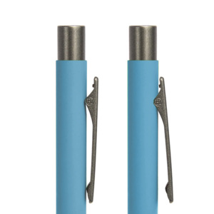 Модель ручки FACTOR – это оптимальный выбор для тех, кто предпочитает добротное качество, надежность и изящную простоту. Этой ручкой писать легко и удобно, она буквально скользит по бумаге благодаря качественным чернилам и надежному пишущему узлу. Все эти качества позволят ручке служить вам верой и правдой долгое время. А клип и корпус данной модели отлично подойдут для нанесения вашего логотипа. • Pantone, близкий к 299 С• Размер 140*10 мм• Корпус из алюминия с покрытием soft touch• Металлический клип-прищепка серого цвета • Пластиковые носик и кнопка в цвет клипа• Нажимной механизм подачи стержня• Пулевидный пишущий узел 1.0 мм• Длина линии письма 1000 м • Чернила Dokumental. Цвет чернил синий• Сменный стержень Parker type• При гравировке вскрывается натуральный цвет алюминия, который может быть либо более белый, либо более серого оттенка.