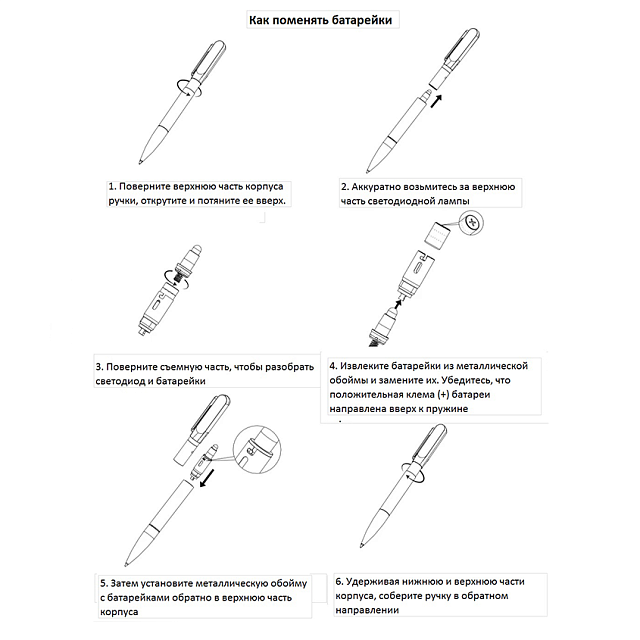 • Цвет, близкий к Pantone Black• Размер 13 х 140 мм• Верхняя часть корпуса из пластика, средняя и нижняя из аллюминия. Корпус с покрытием soft touch• Металлический клип цвета gun• Поворотный механизм подачи стержня• Пулевидный пишущий узел 1.0 мм• Длина линии письма 1000 - 1200 м • Чернила Dokumental. Цвет чернил синий• Ручка одноразовая. Стержень замене не подлежит• Встроенная батарейка и лампочка для подсветки (подсветка возможна только после гравировки верхней части корпуса). Батарейка рассчитана на 10-12 часов работы• батарейку можно заменить. Подходящая модель LR41, 1,5 V. Для одной модели требуется 3 батарейки.