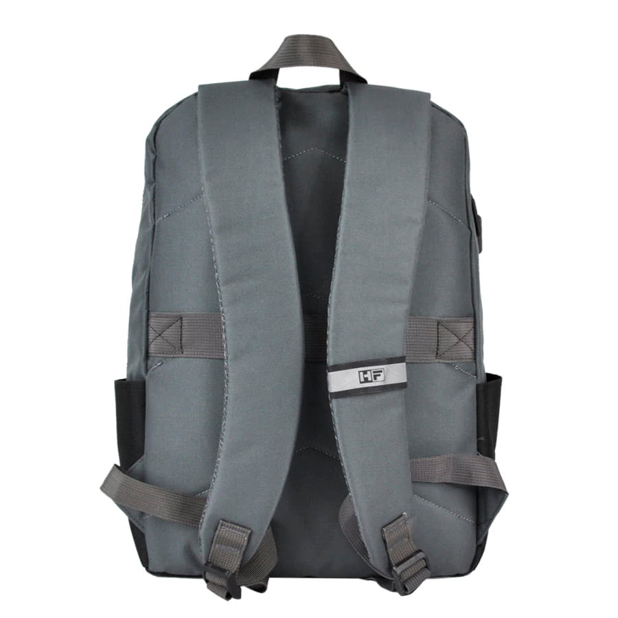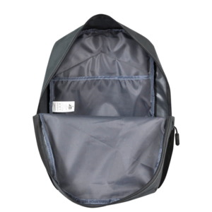 Рюкзак подходит для ноутбука диагональю 15 дюйма, два боковых кармана, отделение для ноутбука.Износостойкий и водоотталкивающий материал, большое пространство, практичность и большая вместительность.Вентилируемые лямки, крепление на ручку чемодана, светоотражающие детали.Пантоны близкие к 431 С Чёрный Объём: 13 литров.