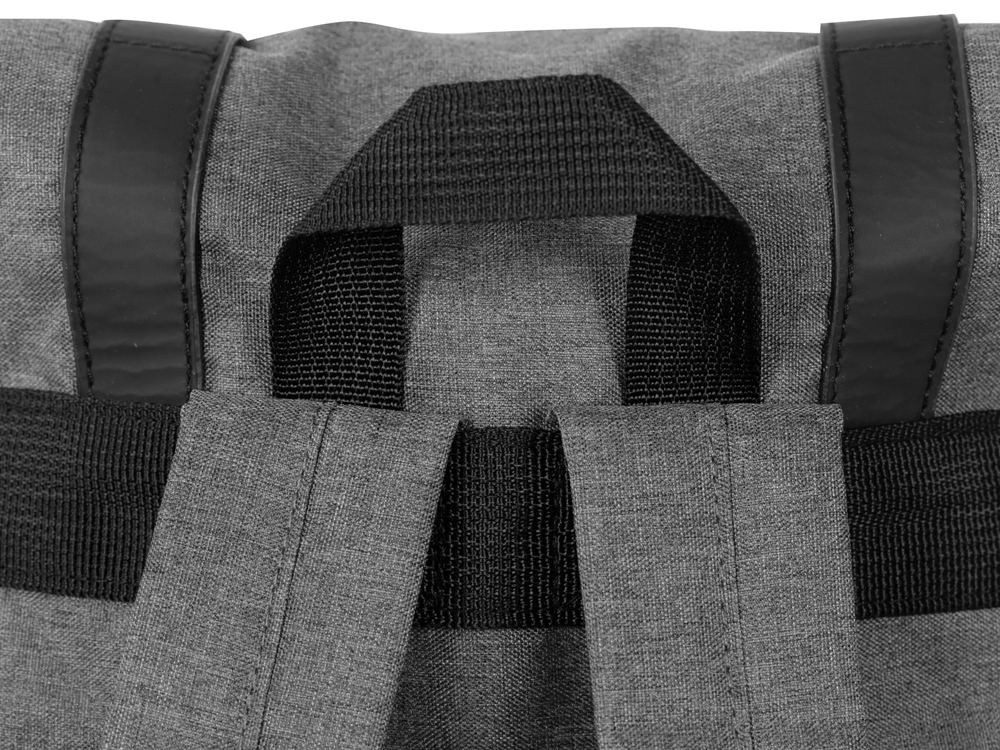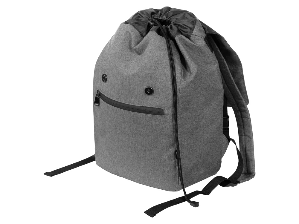 Легкий и вместительный рюкзак закрывается с помощью двух магнитов и стяжки-шнурка. Внутри расположен карман для ноутбука, который фиксируется эластичной лентой на липучке. Снаружи - карман на молнии. Лямки регулируютcя по длине.
