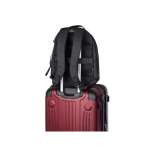 Рюкзак с двумя отделениями: для ноутбука 15.6'' и удобным органайзером с тремя карманами на молнии. - непромокаемая ткань и молнии - не страшен дождь - спереди большой вместительный карман на молнии - сетчатая спинка - карабин - лямки регулируются по длине - ремень для крепления на ручку чемодана - нетканый мешок для хранения в комплекте