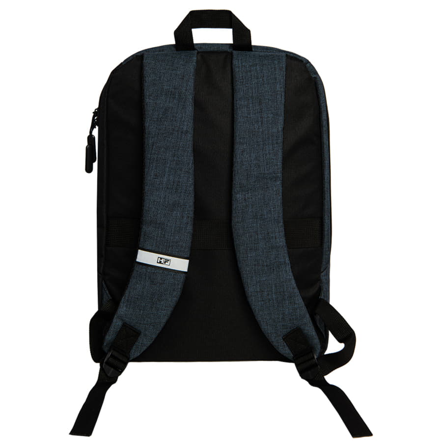 Рюкзак подходит для ноутбука диагональю 15 дюйма, два боковых кармана, отделение для ноутбука.Внутренние детали рюкзака обработаны подкладкой и тканой тесьмой.Износостойкий и водоотталкивающий материал 600 D, большое пространство, практичность и большая вместительность.Вентилируемые лямки, крепление на ручку чемодана, светоотражающие детали.Пантоны близкие к 2380 C Чёрный. Объём: 16 литров.