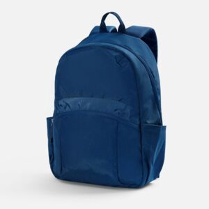 Рюкзак выполнен из гладкого нейлона с высокой устойчивостью к механическим воздействиям и приятным благородным блеском дорогого материала.