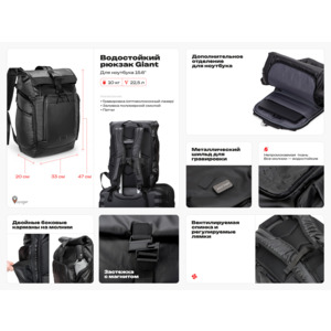 Большой вместительный рюкзак из непромокаемой ткани с водостойкими молниями снабжен множеством функций. Состоит из 2х отделений - для ноутбука и планшета и основного большого отделения, которое закрывается на магнитный фиксатор вверху. Внутри каждого отделения есть сетчатый карман на молнии для удобства хранения личных вещей. Снаружи расположен передний карман на молнии. Боковой наружный карман с каждой стороны состоит из 2х отделений: большого на молнии и меньшего, расширяющегося с помощью эластичной вставки. Благодаря двойным бегункам молния основного отделения открывается сверху и сбоку. В рюкзаке предусмотрено много полезных мелочей для удобства использования: - сетчатая спинка - регулируемые по длине лямки - фиксатор лямок на груди для снижения нагрузки на спину - в комплекте металлический шильд под ваше нанесение.
