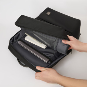 В основном отделении есть уплотнённый глубокий карман для ноутбука (до 15,6") и два органайзера для вещей. Внешний карман на молнии подходит для хранения важных мелочей: ключей, кошелька и наушников.