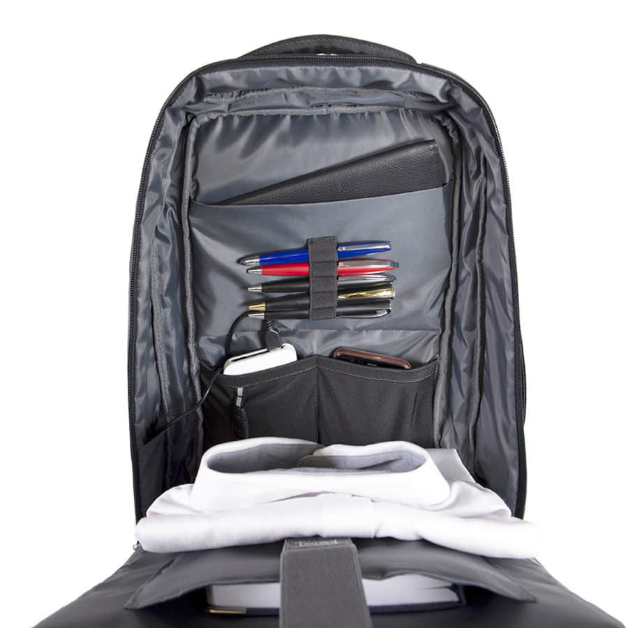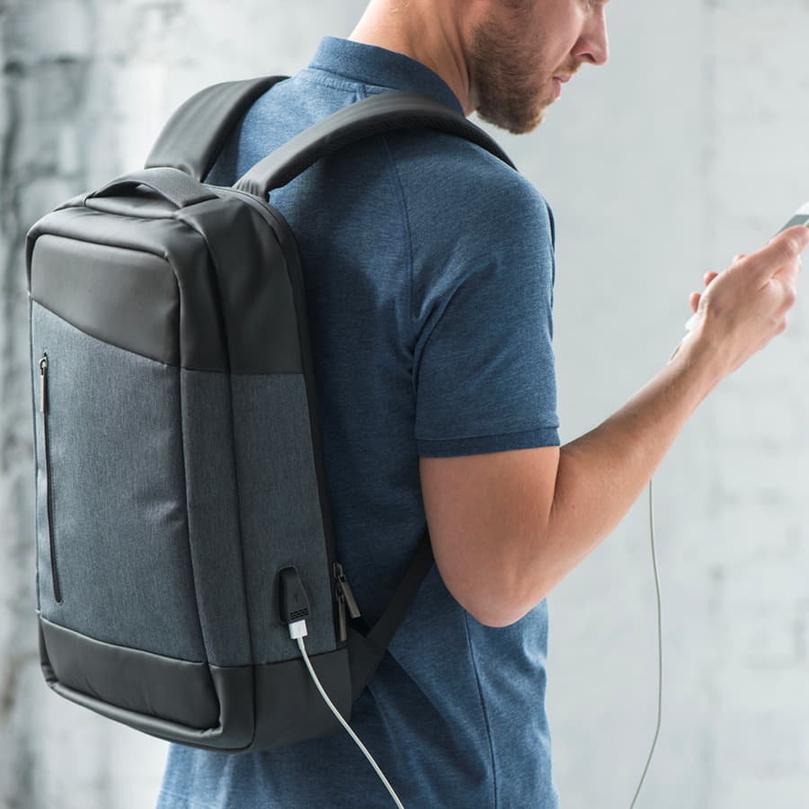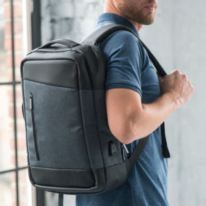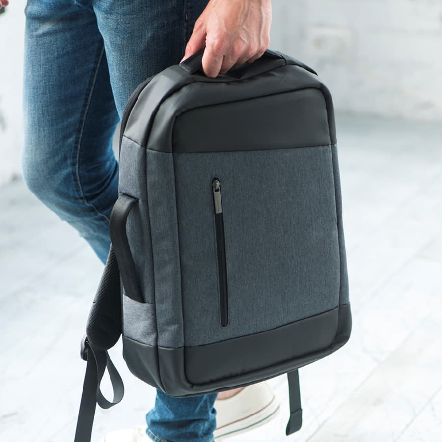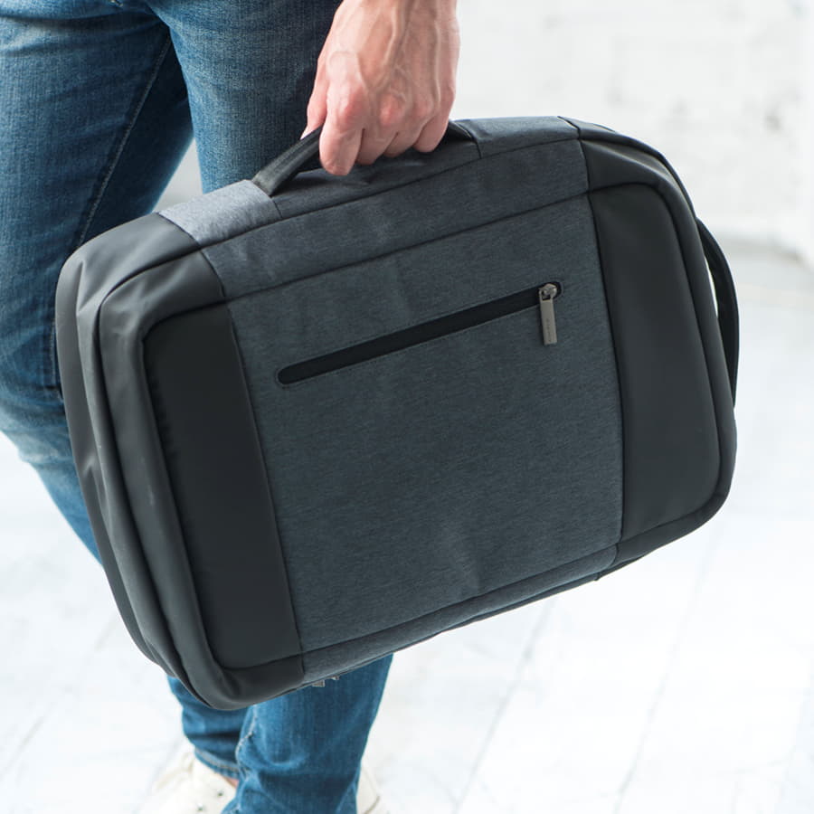• Основная ткань: 100% полиэстер, подкладка: 100% полиэстер• Объём: 20 литров• Вмещает ноутбук 15" Описание:• Сочетание прочных и водоотталкивающих материалов 2х фактур: меланж и PU покрытие c anti-scratchэффектом• Рюкзак трансформируется в сумку• Усиленная ручка для переноски• Широко открывающийся основной отдел для удобства наполнения• Специальный RFID карман с системой защиты от несанкционированного считывания персональных данных• Обратные молнии для предотвращения попадания влаги• Внутри укрепленный отдел для ноутбука с защитной тесьмой на липучке• USB порт для подзарядки вашего устройства (внутри рюкзака расположен кабель для соединения с power bank)• Удобный карман - органайзер внутри• Брелок для хранения ключей• Эргономичная спинка и лямки рюкзака из вентилируемого материала• Лямки для удобства трансформации в сумку можно убрать в функциональную деталь на спинке, которая также предназначена для крепления рюкзака на выдвижной ручке чемодана• Карман на молнии для проездных карт на лямке рюкзака• Лямки прошиты дополнительными стропами в быстро изнашиваемых местах, которые можно отрегулировать по длине и зафиксировать пластиковыми крепежами• Брендированные металлические пуллеры Bag Fly• Жаккардовый логотип Bag Fly внутри• Картонный ярлык Bag Fly• Внутрь рюкзака вложена сумка из нетканого материала для хранения • Упаковка: прозрачный пакет