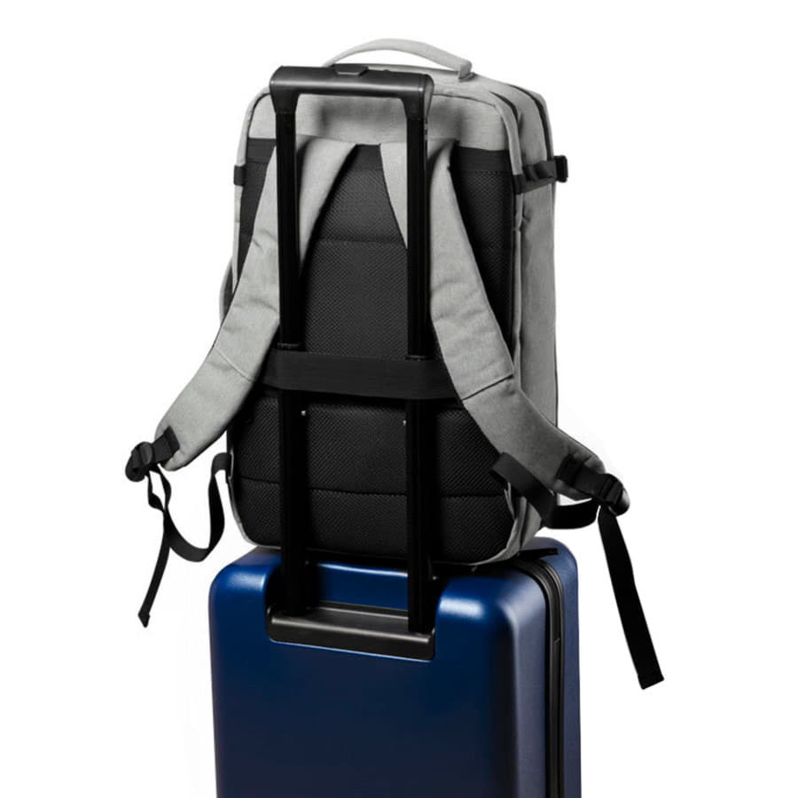 · Специальная стропа, которая предназначена для крепления рюкзака на выдвижной ручке чемодана · Лямки прошиты дополнительными стропами в быстро изнашиваемых местах, которые можно отрегулировать по длине и зафиксировать пластиковыми крепежами · Упаковка: прозрачный пакет
