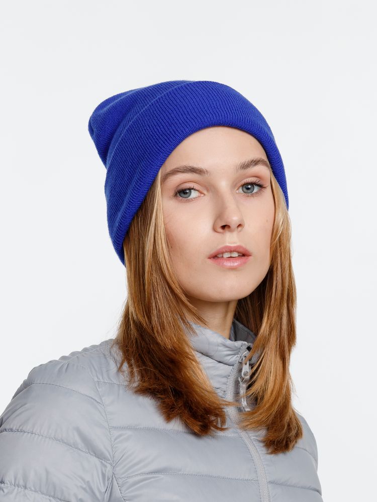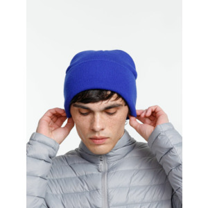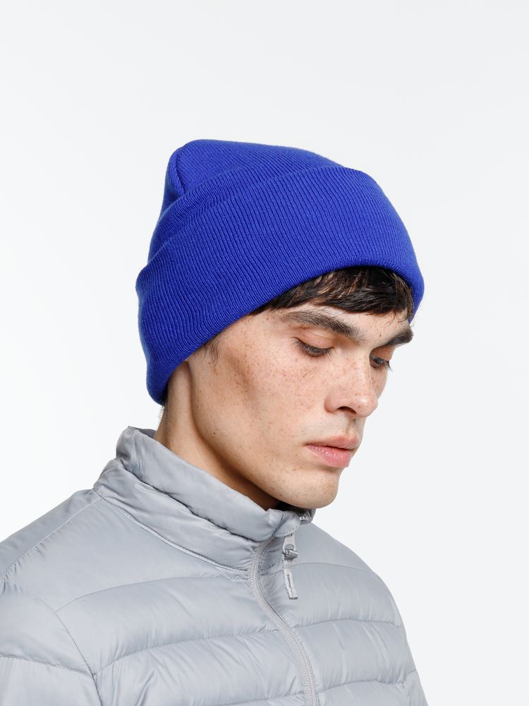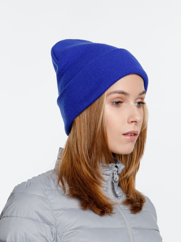 Двухслойная шапка из акриловой пряжи с регулируемым отворотом 7–10 см.