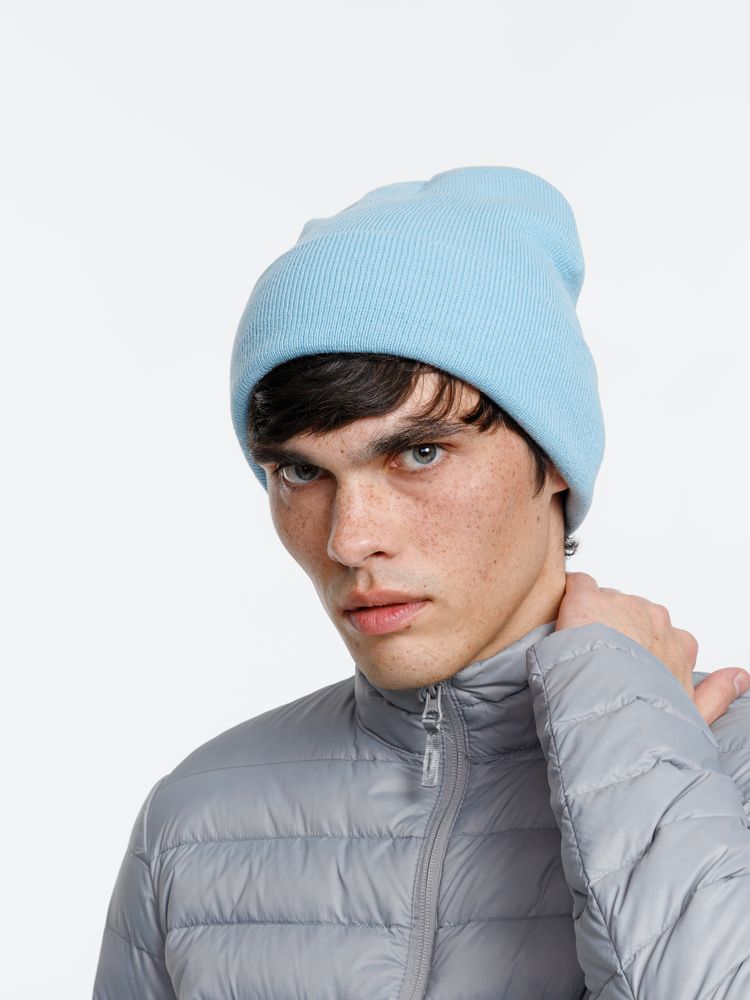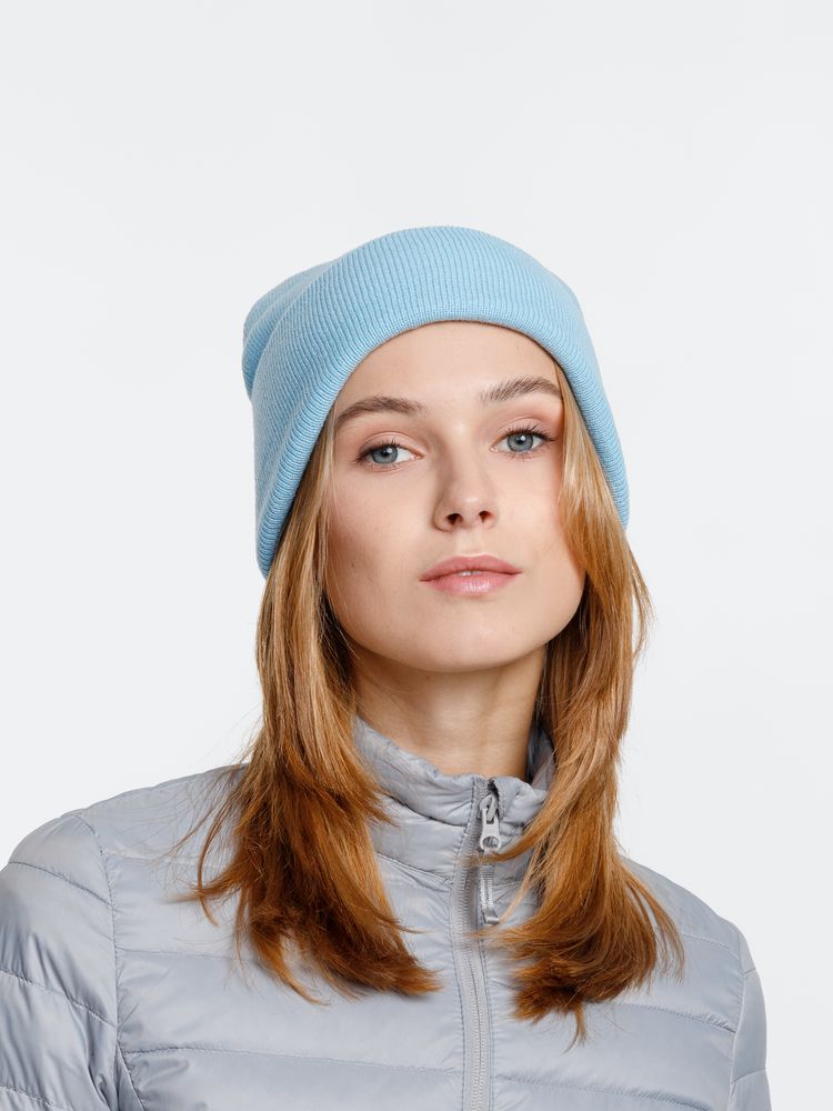 Двухслойная шапка из акриловой пряжи с регулируемым отворотом 7–10 см.