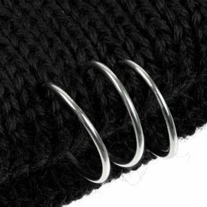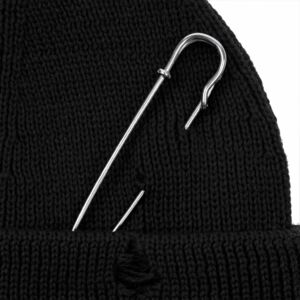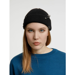 Однослойная шапка бини с рваным отворотом и металлическими аксессуарами для дерзких образов в любом возрасте. Яркий и запоминающийся акцент в стиле гранж.