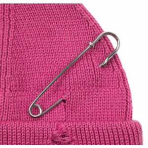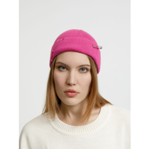 Однослойная шапка бини с рваным отворотом и металлическими аксессуарами для дерзких образов в любом возрасте. Яркий и запоминающийся акцент в стиле гранж.