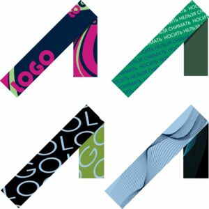 Шарф с вывязанным логотипом и индивидуальным рисунком в фирменной цветовой гамме.