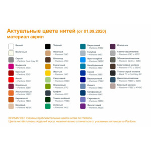 Цвет: выберите цветовое решение по таблице «Актуальные цвета нитей» (на фото).