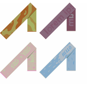 Изнаночная сторона: рисунок читается с обеих сторон шарфа, но на обратной стороне происходит инверсия цвета — текст оказывается в зеркальном отражении.