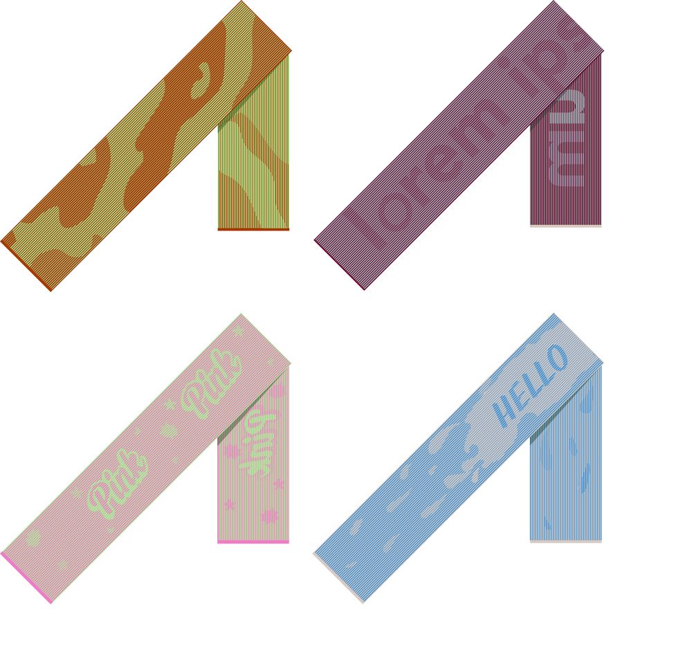 Изнаночная сторона: рисунок читается с обеих сторон шарфа, но на обратной стороне происходит инверсия цвета — текст оказывается в зеркальном отражении.
