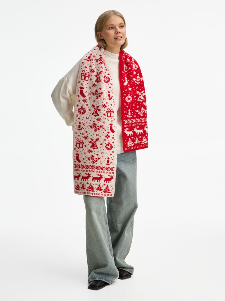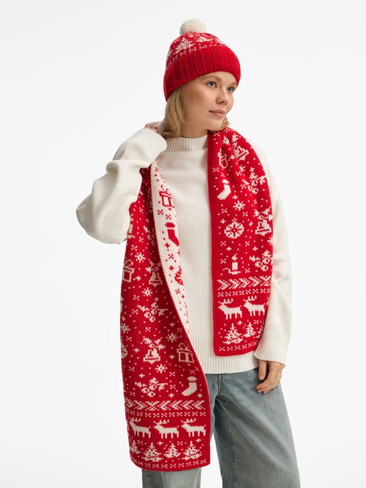 Шарф Holidale, красный с молочным