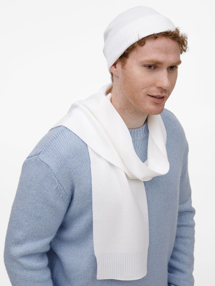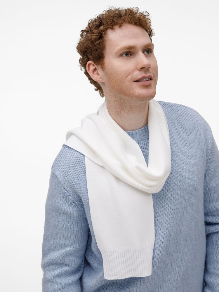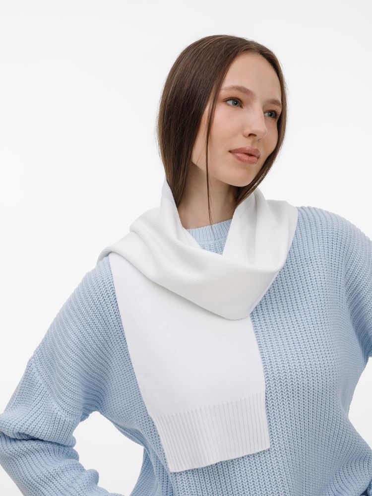 Классический однослойный шарф гладкой вязки. Края, связанные резинкой, придают изделию завершенный и аккуратный вид. Поставляется в пакете с липким краем.