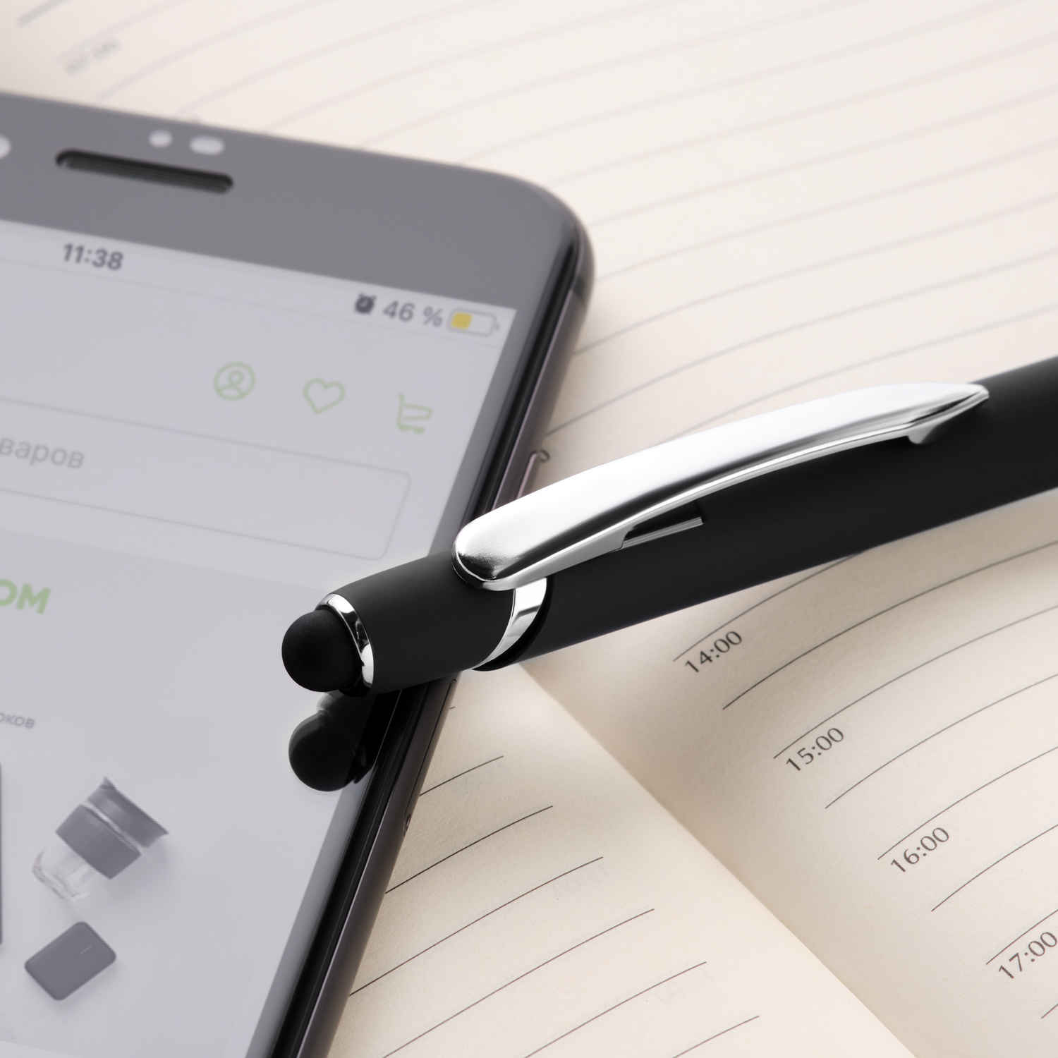 Отделка: хромированные детали, функциональный, надежный клип, оснащен стилусом для работы с сенсорными экранами