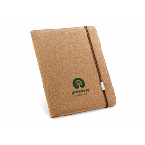 Папка A4 из натуральной пробки, с блокнотом из 20 чистых листов слоновой кости, держателем для шариковой ручки (ручка не входит в комплект) и резинкой. Поставляется в нетканом чехле. 239 x 307 x 17 мм | Сумка: 285 x 350 мм. Вид нанесения, рекомендуемый поставщиком: трансфер, гравировка, трафаретная печать.