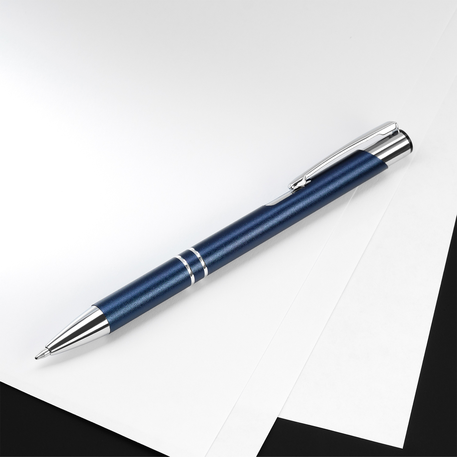 Удобная ручка с матовым покрытием корпуса и эффектными хромированными элементами станет красивым и полезным бизнес-сувениром.
