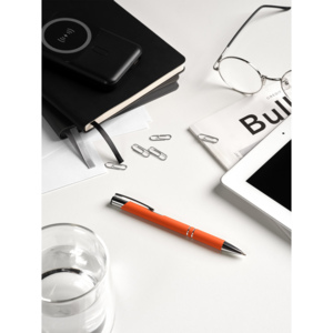 Классическая ручка в шелковистом покрытии soft touch станет прекрасным инструментом для письма. Хромированные детали – два декоративных кольца и функциональный надежный клип.