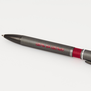Ручка с оригинальным дизайном и гравировкой, вскрывающейся в цвет декоративных деталей.