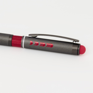 Корпус: алюминий, двухслойное покрытие: базовый цвет (вскрывается при гравировке) - красный, верхний цвет - серый камень