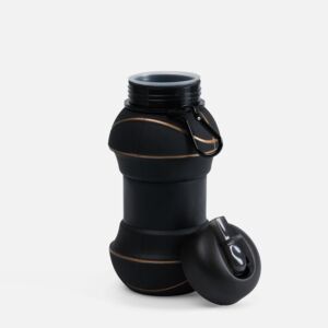 Для удобства ношения бутылка оборудована карабином, а при складывании ее высота уменьшается вдвое, так что пустой она совсем не занимает места.