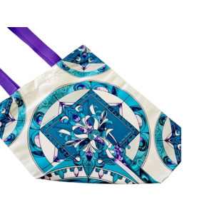 Представляем шоппер по мотивам платка «Каменный цветок»! Платок «Каменный цветок» раскрывает сокровищницу садов Хозяйки Медной горы, издревле воплощающей на Урале неисчерпаемый источник вдохновения. Заглавный образ платка навеян сказом о Каменном Цветке – символе творческого поиска и совершенства. Произведение относится к сборнику «Малахитовая шкатулка» регионального классика, уральского «гения места», писателя П.П. Бажова (1879-1950), который на основе фольклора создал вневременной эпос об Урале. По мотивам сказов, в дизайне платка мозаика цветка Хозяйки содержит уральские самоцветные кристаллы аметиста и медного изумруда, по преданию наделенного исключительной магической силой. Цветок предстает в обрамлении каймы узорчатого малахита – символа Хозяйки горы и Урала в целом.