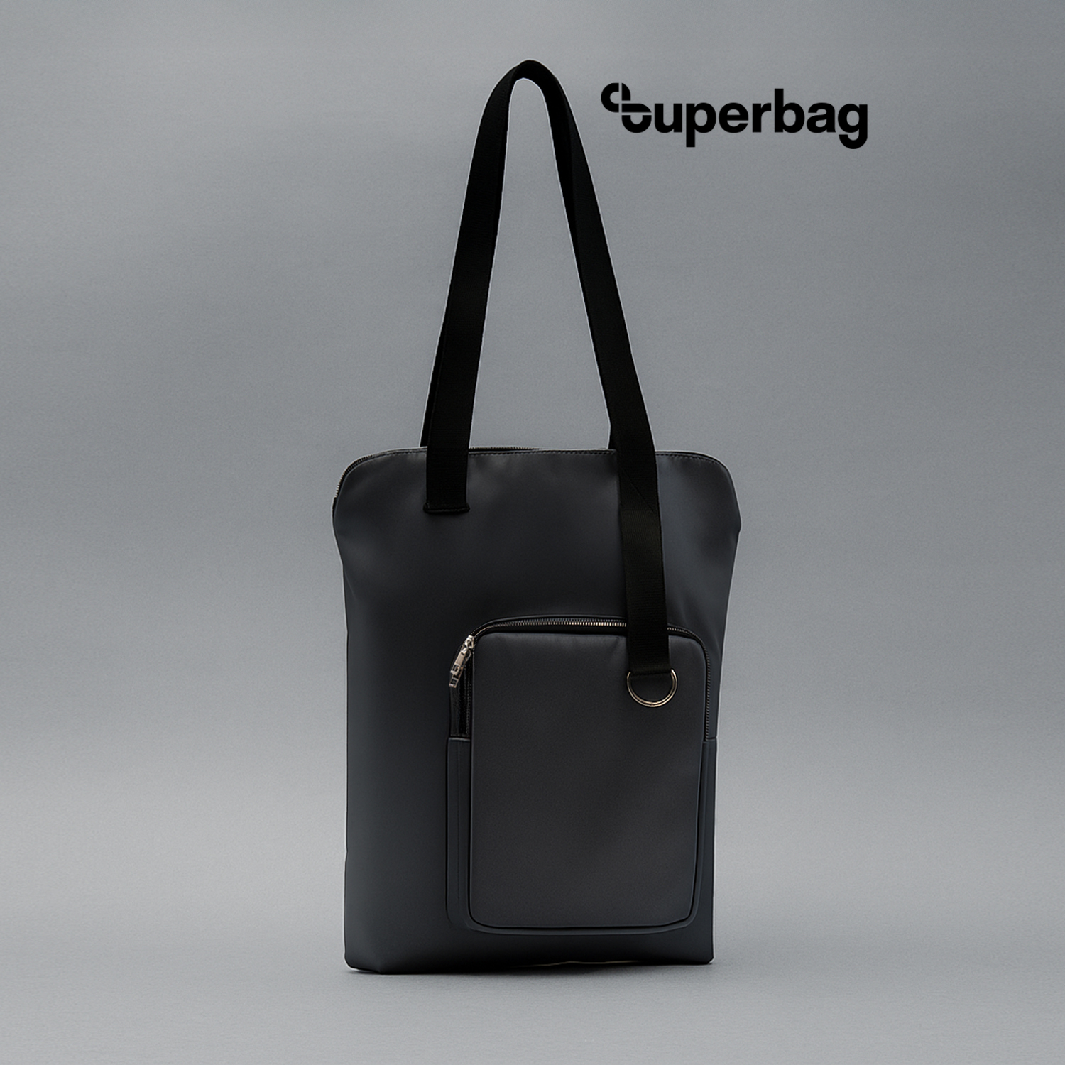 Шоппер Superbag Pocket, с внутренним креплением (карабин) и чехлом для мелочей (серый с черным)