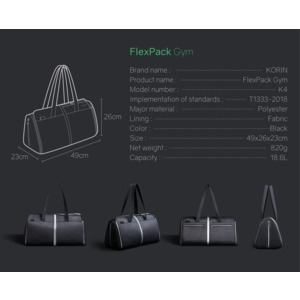 Спортивная KORIN сумка FlexPack Gym 49х26х23 см, темно-серая