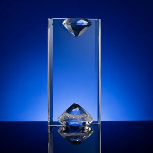 Стела Incrystal — воплощение минимализма, приправленного двумя привлекательными акцентами. Крупные детали в форме эффектных алмазов у основания и в навершии образуют гармоничное единство, олицетворяя сильные стороны, устремленность к единой цели и особую ценность получателя награды. Свет красиво преломляется в гранях этих алмазов, создавая приятный визуальный эффект и добавляя стеле оттенок роскоши.