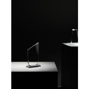 Стела изготовлена из стекла К9, в основе которого лежит оптическое боросиликатное стекло. Эту марку стекла отличает низкий процент посторонних включений, высокий показатель преломления и высокая прозрачность — идеальные качества для изготовления наград премиального уровня.