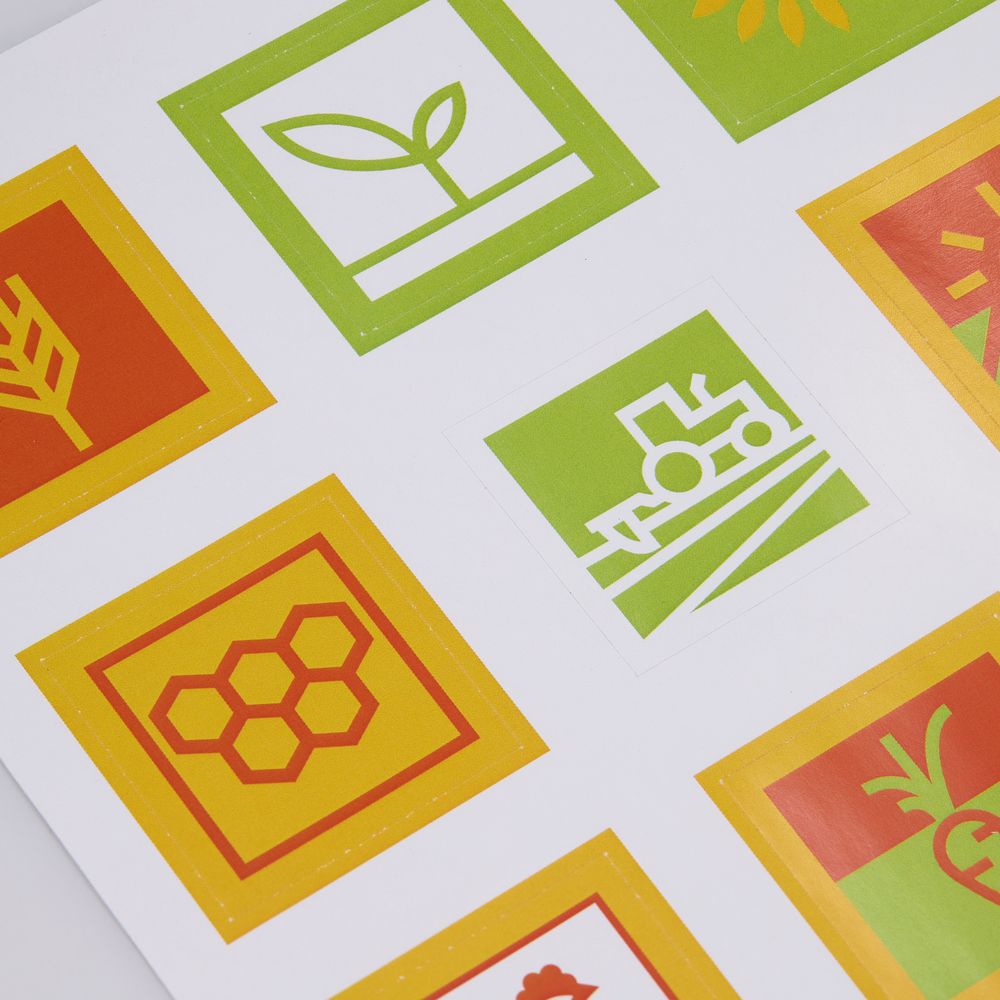 В каждой части общего рисунка изображены главные символы, связанные с сельским хозяйством