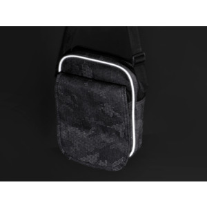 Материал сумки имеет светоотражающее камуфляжное нанесение. Спереди по краю сумки расположена светоотражающая полоса. Все это обеспечивает дополнительную безопасность в темное время суток. Удобная конструкция для всего самого необходимого: 2 отделения и передний карман на молнии с клапаном на липучке. Длинный ремень на плечо регулируется по длине и подойдет для людей любого роста.