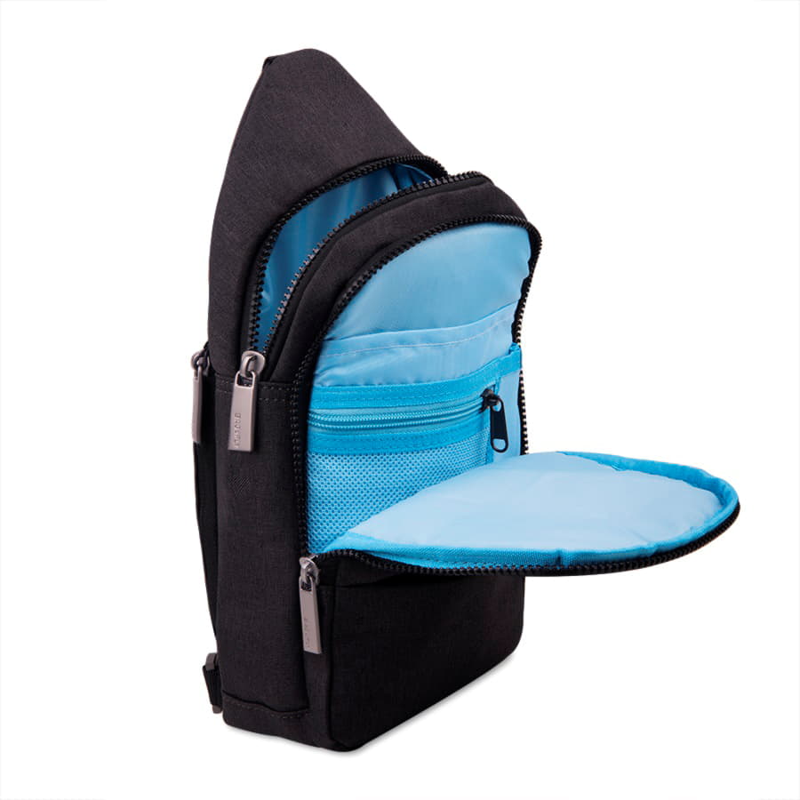 Два больших основных глубоких отделения с мелкими отделениями для мелочейКарман с RFID-защитой на молнии со стороны спинки для размещения самых ценных предметовНебольшой внешний карман на лицевой стороне на молнии со стильнымпластиково-металическим пуллеромКачественная регулируемая лямка с карабином и двумя кольцами внизу спинки