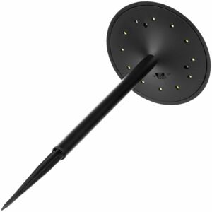 Не требует замены батареек или зарядки аккумулятора, так как заряжается от солнечного света, и сложной установки — фонарик достаточно просто воткнуть в землю в любом удобном месте.