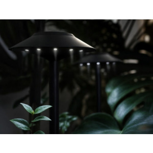 Светильник Ufology в лаконичном корпусе прекрасно подходит для освещения садовых дорожек, тропинок и декоративных элементов на газоне. Благодаря оригинальной конструкции плафона — в форме зонтика — глазам всегда будет комфортно в темноте — без яркого, бьющего света.