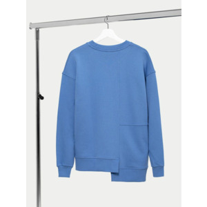 Свитшот унисекс свободного кроя со спущенным плечом и нестандартным нижним краем.